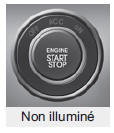 Si vous appuyez sur le bouton de DÉMARRAGE/ARRÊT DU MOTEUR sans appuyer sur la pédale de freinage, le moteur ne démarrera pas et le bouton changera de position comme suit: OFF ➔ ACC ➔ ON ➔ OFF