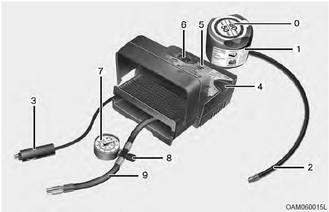 Kia Rio: Composantes de la trousse de réparation des pneus