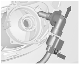 ainsi que la tubulure de remplissage du réservoir de lave-glace avant, en le sortant